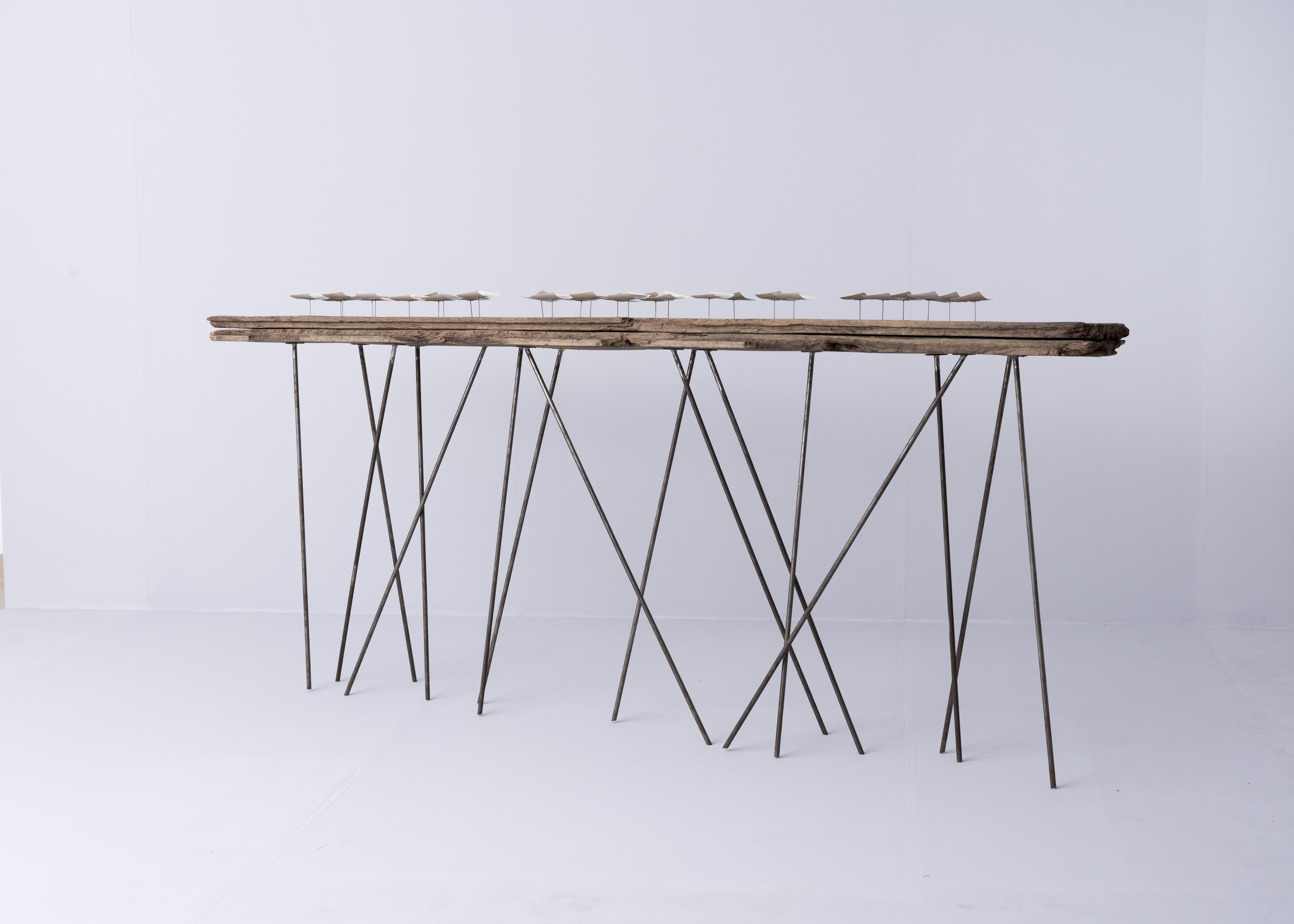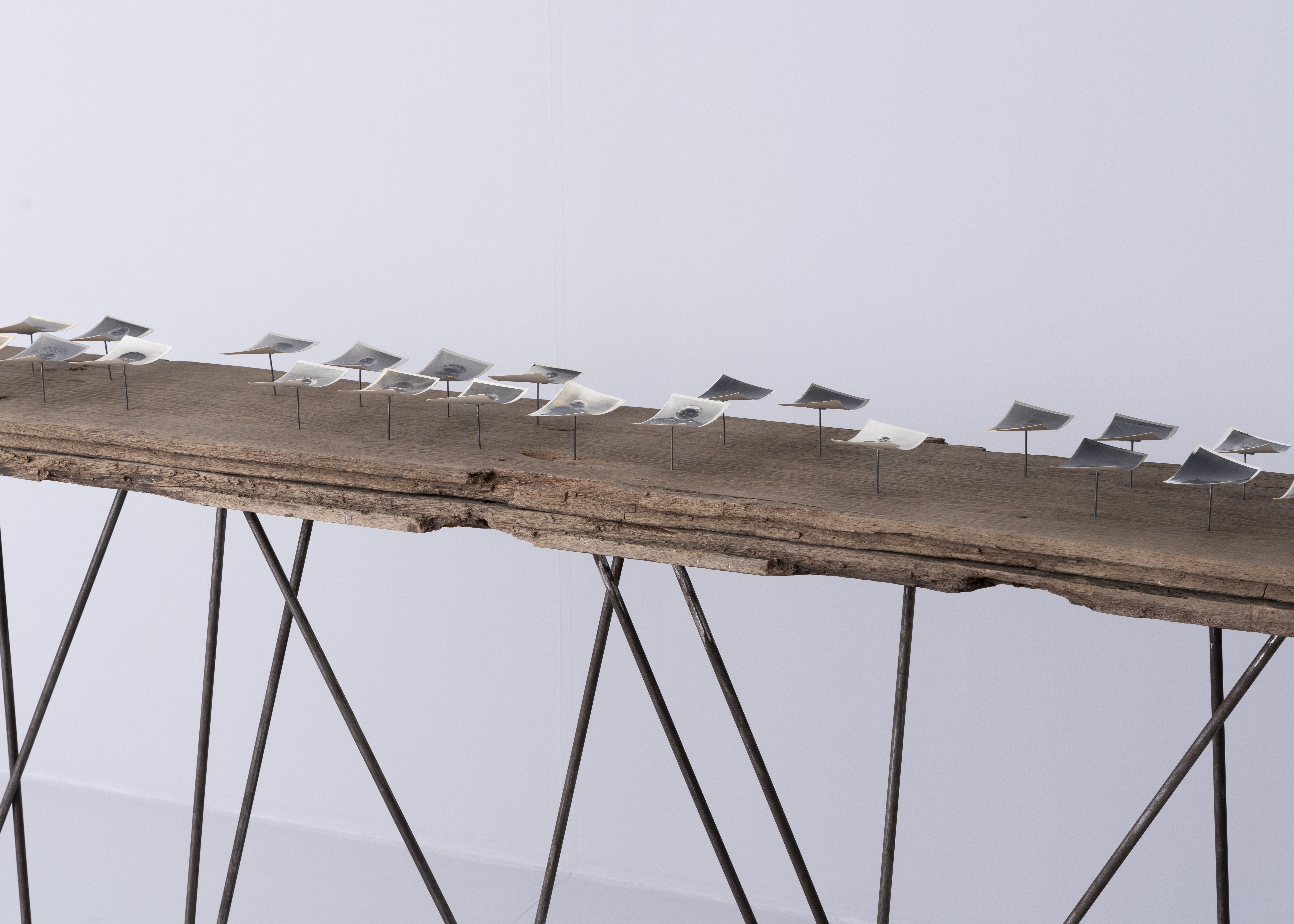 Wasif revisited his archive of over a decade of work in Old Dhaka to develop Paper Negative, an installation featuring 28 original paper negatives created with the Box Camera in collaboration with photographer Sheikh Mohamad Safdar Hossain. Spanning locations from Beauty Boarding to Shakhari Bazaar and its bustling streets, each negative, marked with pink and red hues of photographic chemicals, bears encounters with the local people.